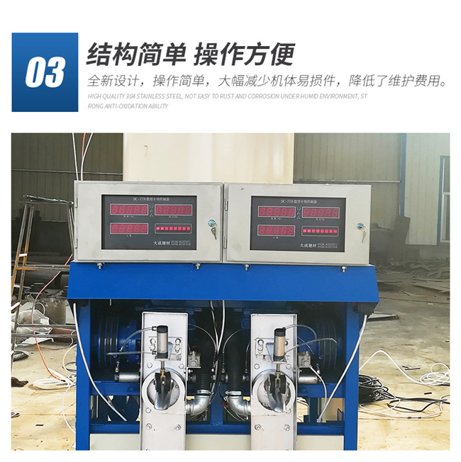 該包裝機(jī)主要用于水泥,脫硫石膏粉、粉煤灰等流動(dòng)性好的粉狀物料的包裝。該型包裝機(jī)特有性能如下: